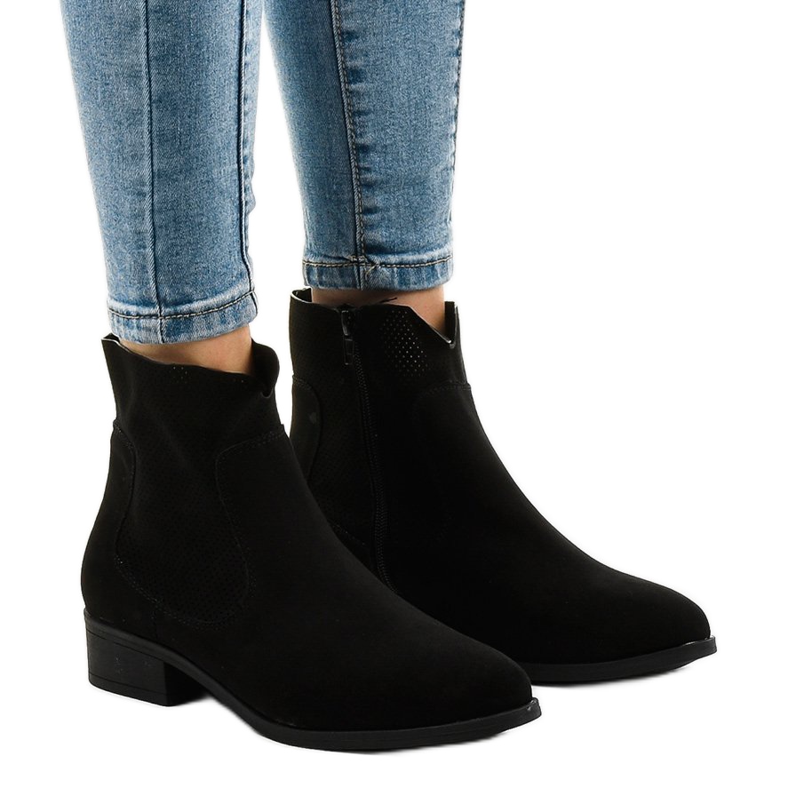 Stövlarna är utrustade med en 3 centimeter bred klack, vilket säkerställer stabilitet och komfort när de bärs under långa perioder. Textilsulor garanterar komfort och dragkedjor på insidan gör det lättare att ta på och av skorna. Den runda tån ger frihet för tårna, och den syntetiska sulan gör skorna inte bara snygga, utan också slitstarka.