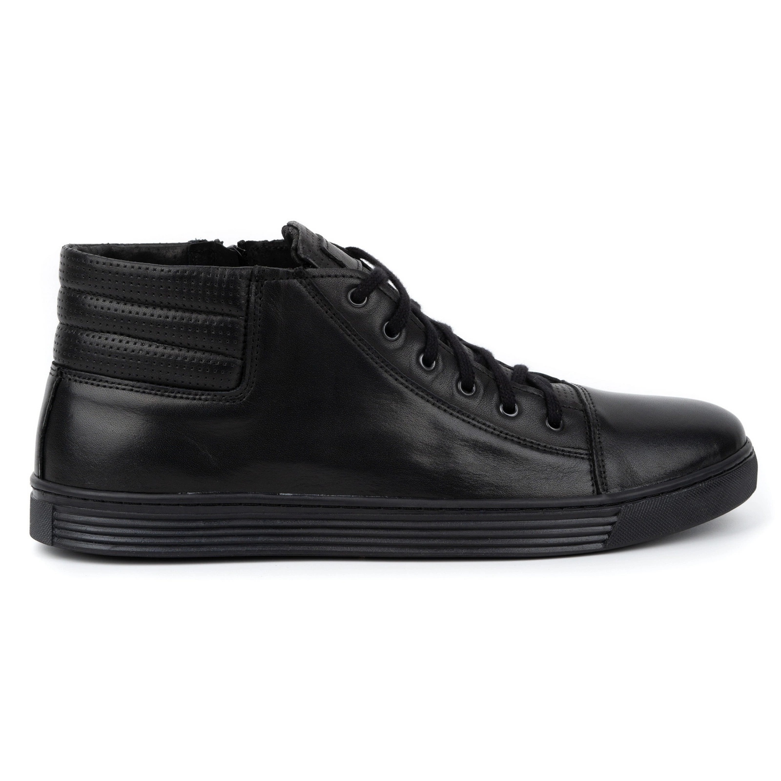 Dessa skor finns i en moderiktig, dämpad svart färg, perfekt matchande olika stilar. En intressant accent är kontrasterande ränder som ger karaktär till skorna. Den flexibla sulan av högkvalitativt material anpassar sig perfekt till fotens form och garanterar hög bärkomfort.