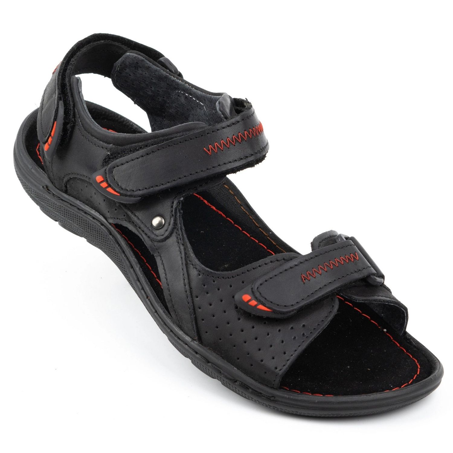 Moderna mäns sandaler Olivier 323 kombinerar klassisk, svart design med praktiska lösningar, tack vare vilka de kommer att arbeta både under stadspromenader och sommarresor. Toppen och interiören är gjord av naturläder, vilket säkerställer hållbarhet, god ventilation och estetiskt utseende.