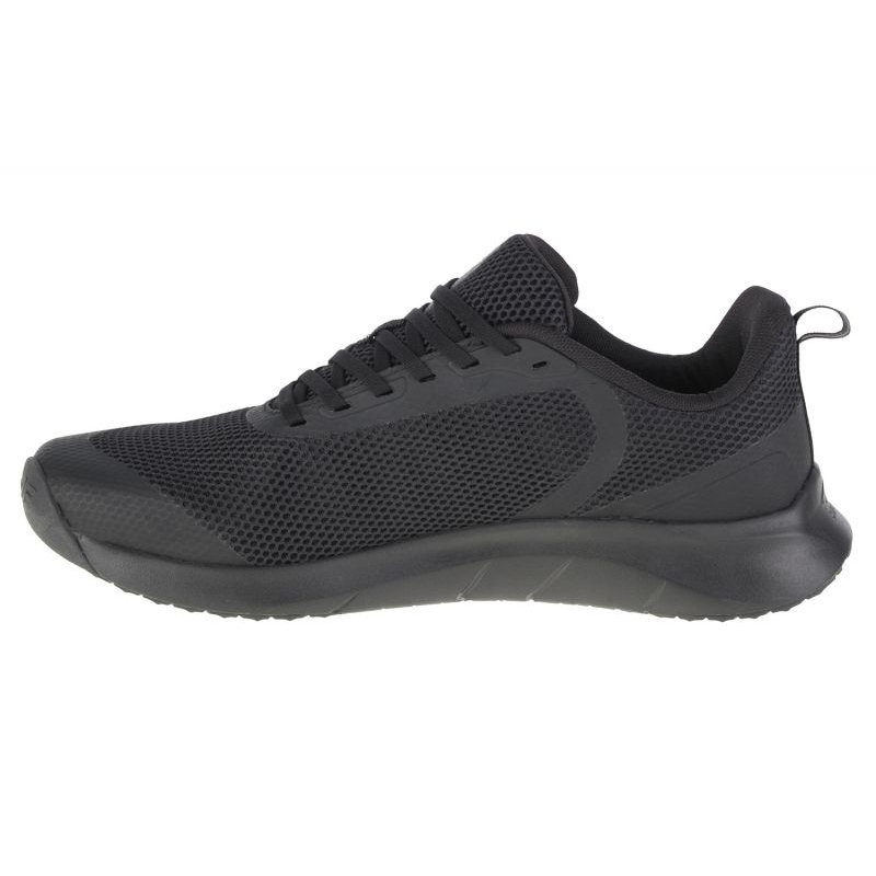 Det mjuka innerfodret och snörning gör dessa skor bekväma och anpassar sig till foten, vilket är nödvändigt vid fysisk aktivitet. Den minimalistiska svarta färgen och tillverkarens logotyp ger dem en modern karaktär, vilket gör dem lämpliga för många stilar.