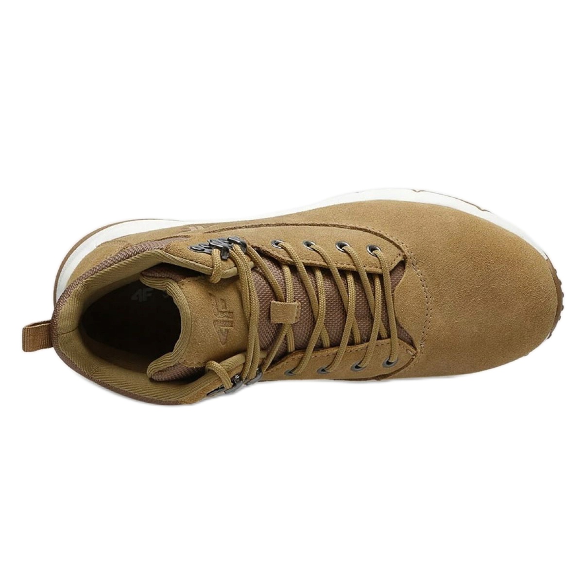 Upptäck nya horisonter med 4F Urban Hiker W D4Z20-OBDH200 82S-skor i en elegant brun kamelfärg. Dessa höga, sportiga damskor kombinerar stil och funktionalitet, perfekta för höstvandringar och vardagliga promenader.