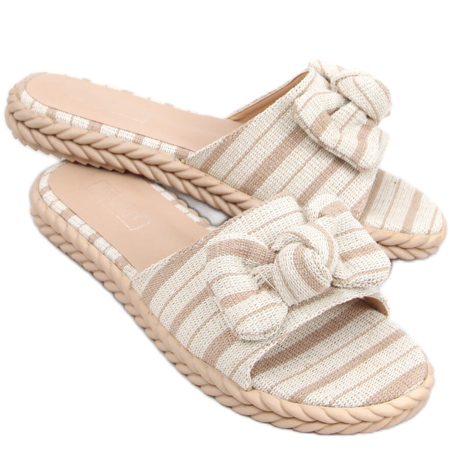 Adana Aprikos beige flipflops för kvinnor är det perfekta valet för sommardagar! Dessa snygga flip-flops med platt sula kombinerar funktionalitet med moderiktig design. Tack vare en vacker rosett framtill och ett original randigt mönster, kommer de att vara ett perfekt komplement till vilken sommarstyling som helst och lägga till lätthet och romantik till den.