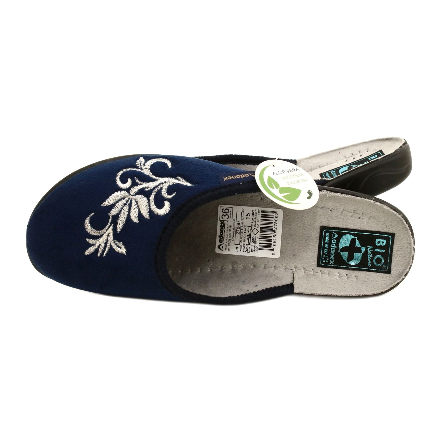 Insidan av tofflorna är fodrad med Aloe Vera sammetstyg, vilket säkerställer komfort och vårdegenskaper. Tack vare det aktiva joniska silvret har tofflorna antiinflammatoriska och antiseptiska egenskaper, regenererar epidermis och stimulerar produktionen av kollagen. Det betyder att dina fötter inte bara blir bekväma, utan också välskötta.