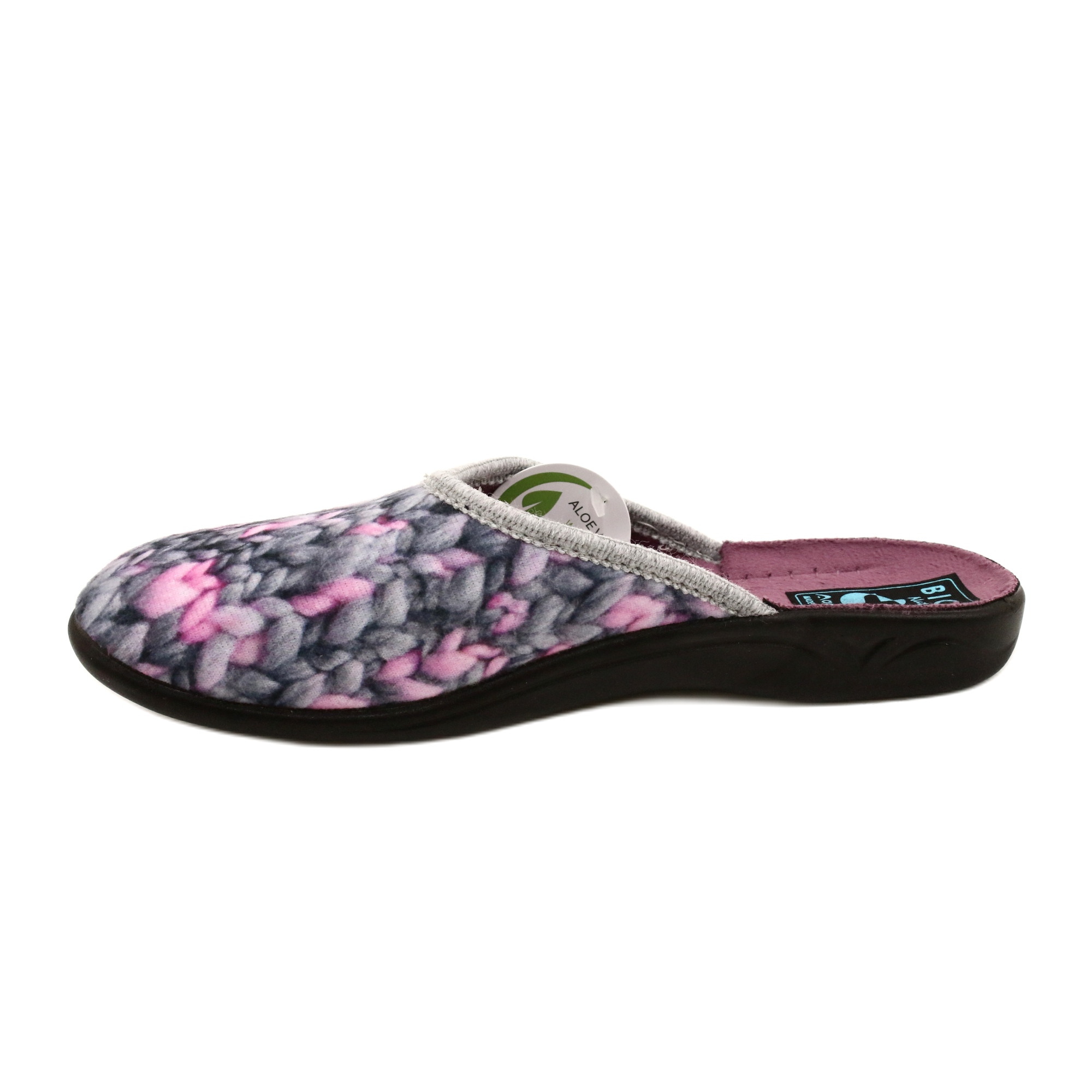 Bekväma kvinnors tofflor designade för känsliga fötter. Tillverkad av mjukt och flexibelt textilmaterial, med en trevlig velorfoder och en insats blöt i Aloe Vera -extrakt (aloe vera), som dessutom tar hand om och uppdaterar fötternas hud.