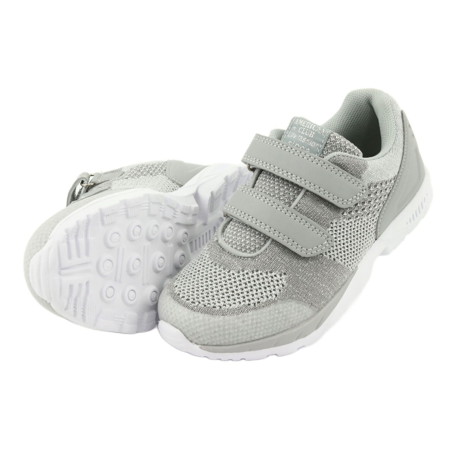 American Club ES16 sportskor för tjejer i grått och silver är det perfekta valet för aktiva tjejer. Tillverkade av högkvalitativt meshtyg, ger de utmärkt luftcirkulation och bärkomfort. Deras insida är fodrad med mjukt textilmaterial, vilket gör dem extremt bekväma även vid lång användning.