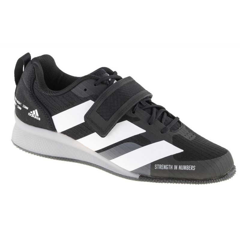 Adidas Adima Viktlyftning 3 skor (GY8923) - Professionell träningskor för män, skapade för styrketräning och tyngdlyftning. Den lågprofilerade designen kombinerar en exakt passform med snörning med ytterligare kardborrfäste för maximal stabilisering av foten under dynamiska och styrkaövningar.
