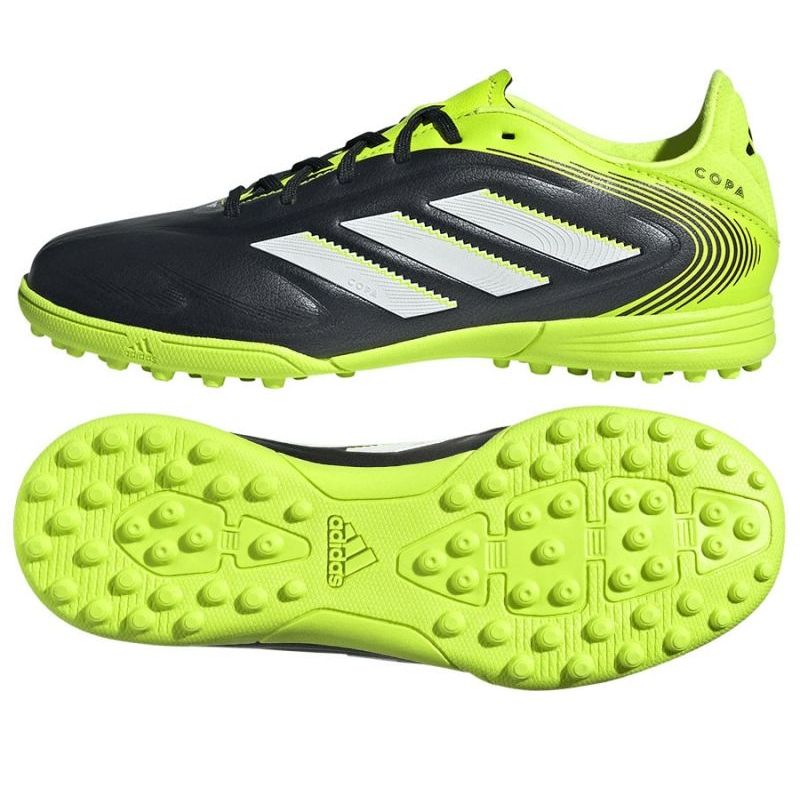 Tillgänglig i en elegant svart och grön färgkombination, adidas Copa Pure III League TF JR Shoes kombinerar stil och funktionalitet, vilket innebär att varje ung idrottare kommer att kunna lysa på planen. Tveka inte - välj den perfekta utrustningen som hjälper dig att uppnå sportsframgångar!