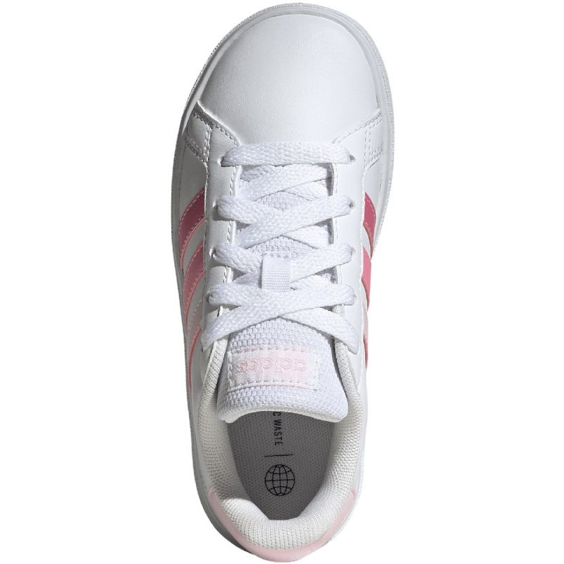 Upptäck glädjen med utomhusaktiviteter tack vare Adidas Grand Court Lifestyle Tennis Lace-up IG0440-skor i vitt. Dessa snygga skor för barn, hängivna till flickor, kombinerar komfort och funktionalitet, idealiskt lämpade för vardagliga spel och sportutmaningar.