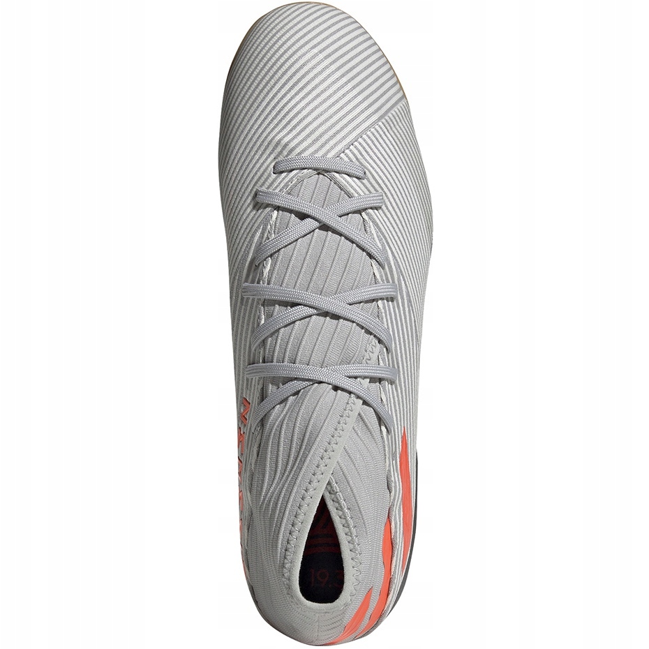 Adidas Nemeziz 19.3 i (EF8289) - Snabb, manövrerbar och redo att spela i hallen. Modell från krypteringspaketet kombinerar dämpade grå silverfärger med orange accenter, och erbjuder en modern look och sportfunktionalitet för semi-amatörspelare.