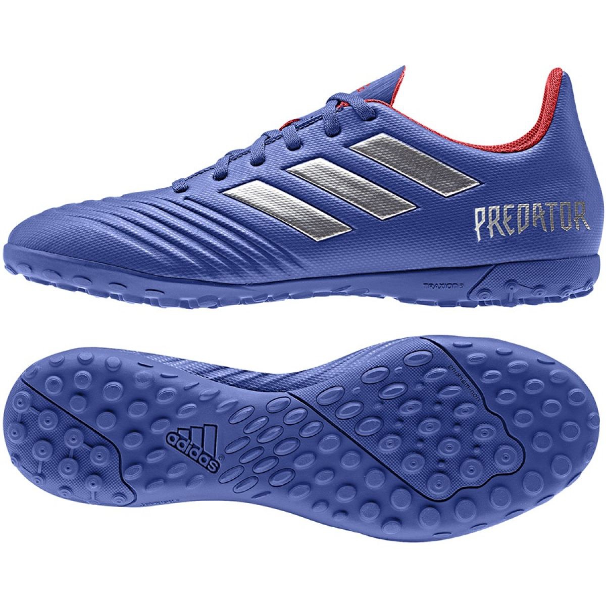 Adidas Predator 19.4 Tf M BB9085 fotbollsskor är ett perfekt val för alla fotbollsfans som letar efter prestanda och en stilren look. Presenterade i en intensiv blå färg kombinerar dessa gräsmattor perfekt modern design med praktiska egenskaper.