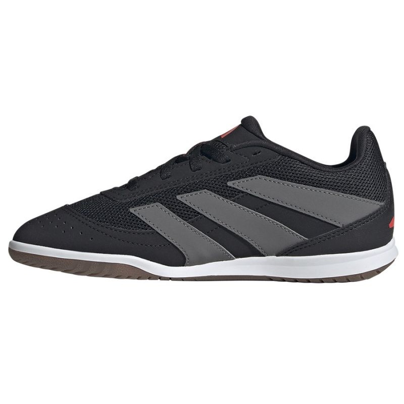 Adidas Predator Club Sala i modell kännetecknas av bristen på en strumpa, vilket möjliggör större rörelsefrihet. Spets -uppfästelementet låter dig perfekt matcha foten, vilket är avgörande under dynamiska åtgärder på planen. Skonens inre har berikats med ett tyginsats, vilket ökar komforten att bära och gör varje ögonblick som tillbringas i dessa skor är rent nöje.