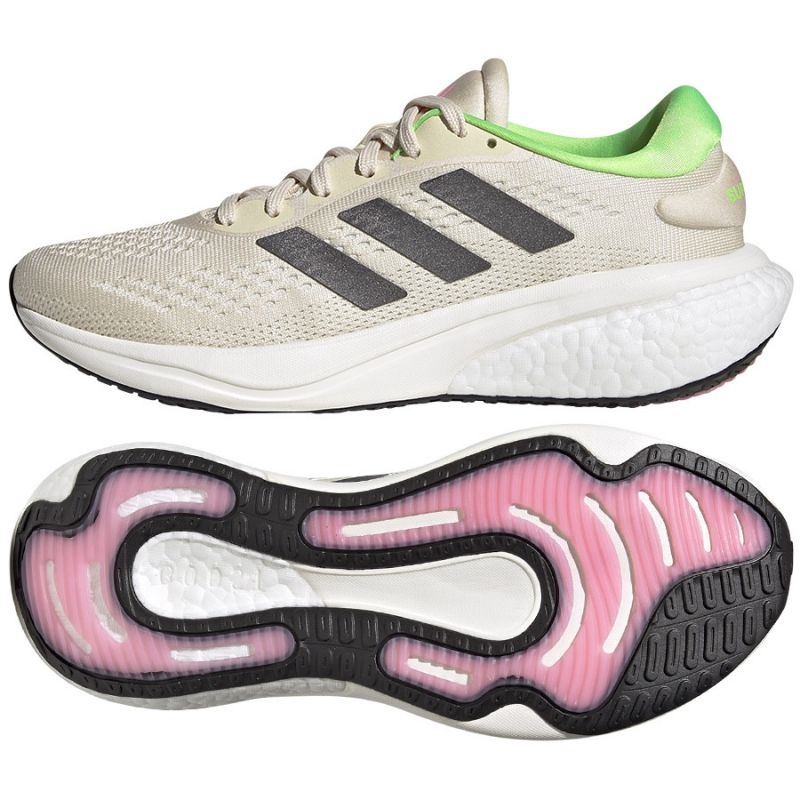 Moderna, lätta adidas träningsskor från Supernova -kollektionen, designad för att köra på hårda ytor (asfalt). Kombinationen av andningsnät med avancerade dämpande insatser (boost på hälen och studsar framtill) säkerställer komfort, stabilitet och goda slag.