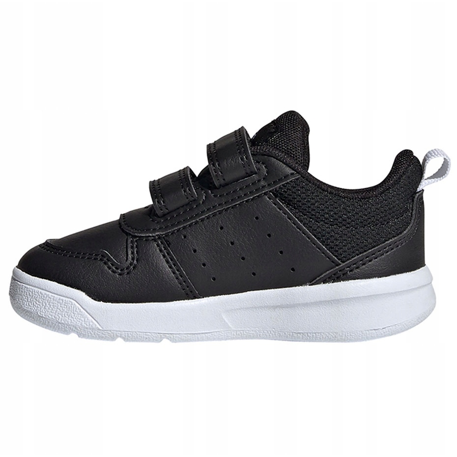Adidas Tensaur I (S24054) Barnskor - bekvämlighet och enkelhet varje dag. Den lätta designen och praktiska kardborrband gör att småbarn snabbt sätter på dem och binder dem, och föräldrar sparar tid när de förbereder sig för utgången. Det klassiska naturläderets övre kombinerar hållbarhet med estetik, medan textilinsatser på sidorna och den materiella tungan förbättrar ventilationen och bär komfort. Det mjuka fodret och en bekväm insats ger dämpning och en trevlig passform, och gummisula garanterar god vidhäftning på stadsytor. Monokrom, svart design med en kontrasterande vit sula matchar många stilar - från förskola till familjens promenader.