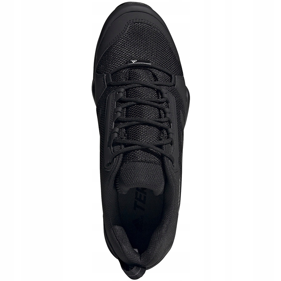 Adidas Terrex Ax3 (EF3316) herrskor - lätta, hållbara och universella vandringsskor, designade för bergsvandring, skogsspår och aktiv utgifter utomhus. Den svarta, låga silhuetten kombinerar en sportutseende med funktionella lösningar som säkerställer komfort och säkerhet.