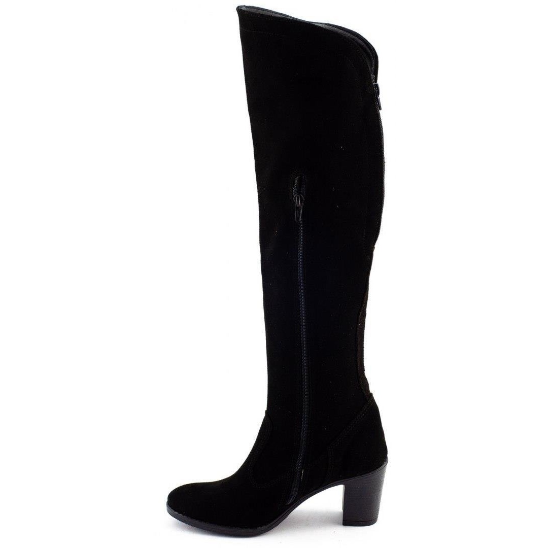 Modellen är försedd med en dragkedja i sidan som gör den lättare att ta av och på och den runda nosen ger en klassisk karaktär. Stövelns totala höjd är cirka 52 cm, vilket ger perfekt stöd för benen, och dess universella svarta färg gör att den passar både till byxor och olika typer av kjolar och klänningar.