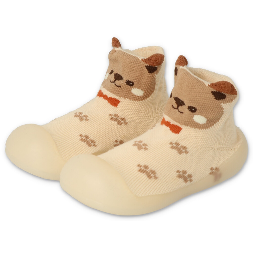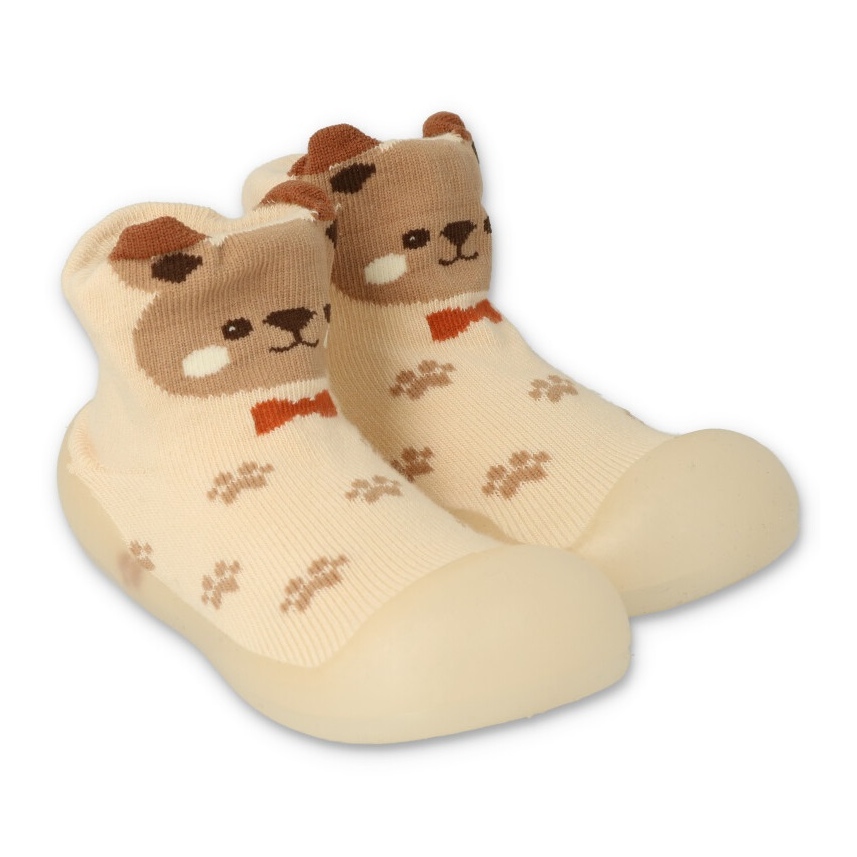 Den bruna varianten med svarta accenter gör promenadskorna universella och passar både killar och tjejer. De är gjorda av mjukt tyg, vilket ytterligare ökar bärkomforten. Dessutom gör avsaknaden av en traditionell fästning det lättare för föräldrar att ta på och av skorna snabbt och enkelt.