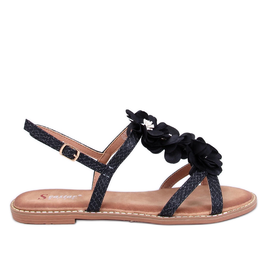 Detaljer: Amaur Svarta sandaler med fina blommor