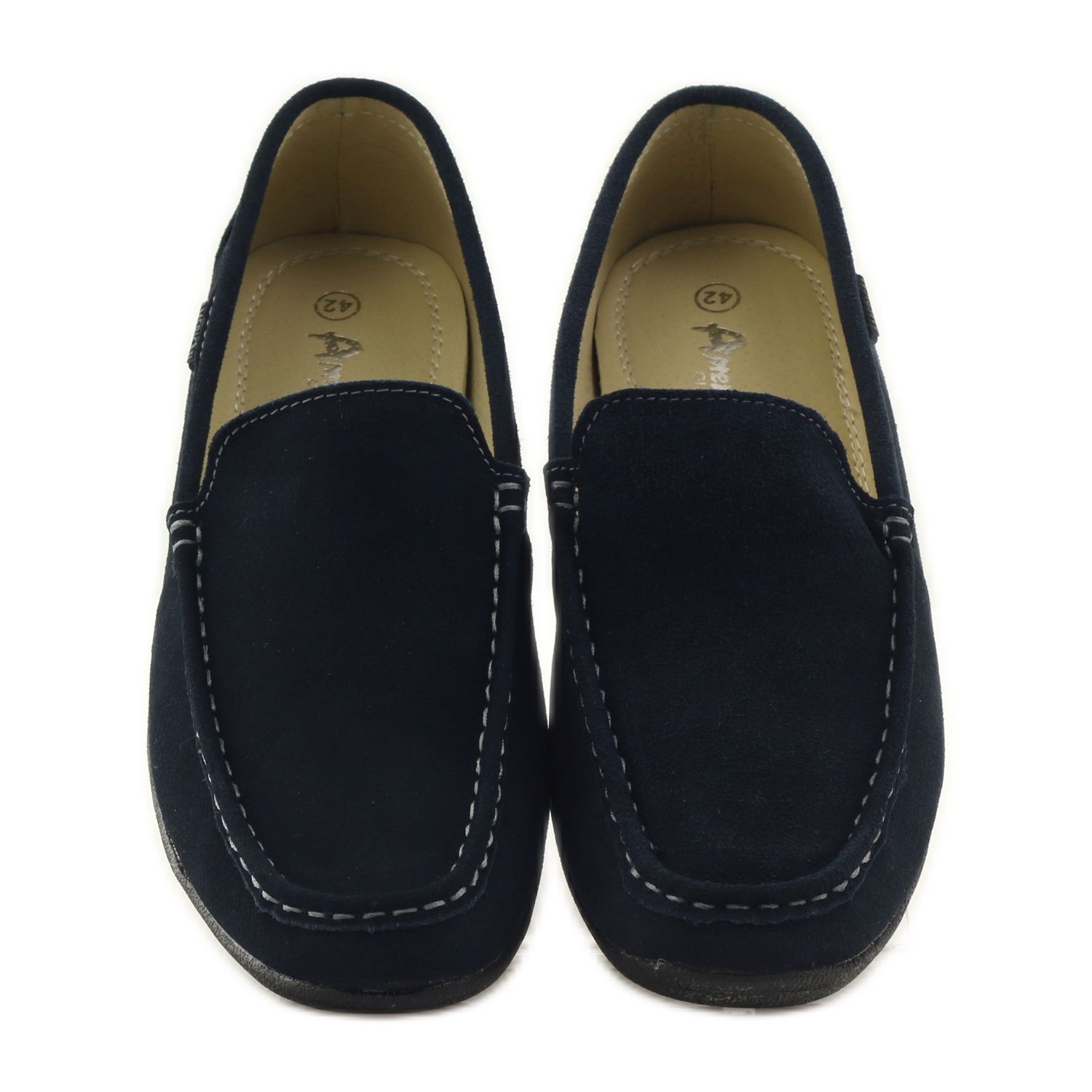 American Club 2018 marinblå loafers är ett perfekt val för män som värdesätter elegans och komfort. Dessa tofflor är helt gjorda av naturligt mockaskinn och sticker ut med intressanta vita sömmar som ger dem karaktär.