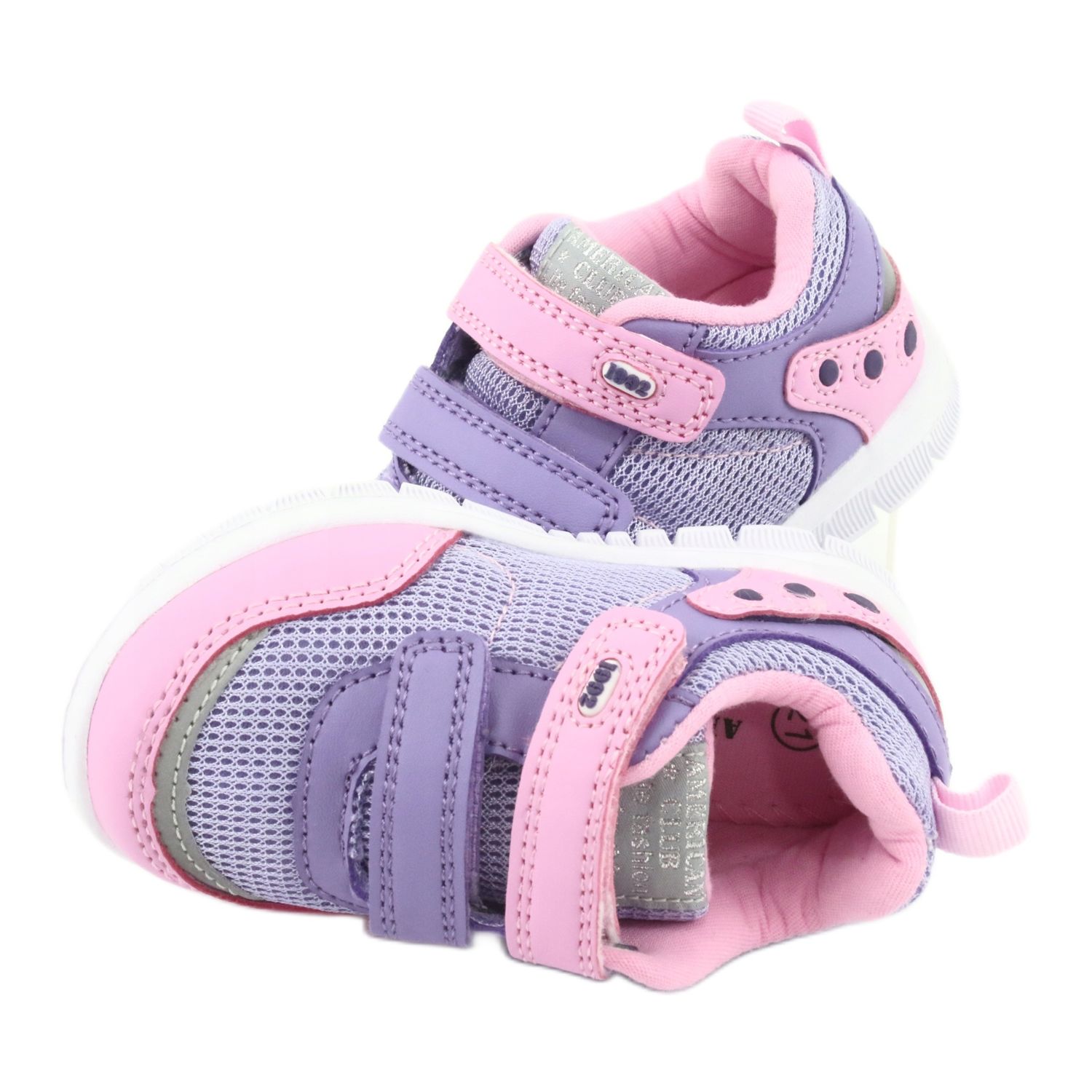 En karakteristisk egenskap hos dessa skor är deras attraktiva design i nyanser av lila och rosa, vilket säkert kommer att tilltala varje tjej. Den lätta, syntetiska EVA-sulan har stötdämpande egenskaper, vilket gör skorna både slitstarka och stabila. Tack vare den styva hälen får foten ett bra stöd, vilket är viktigt vid intensiva aktiviteter.