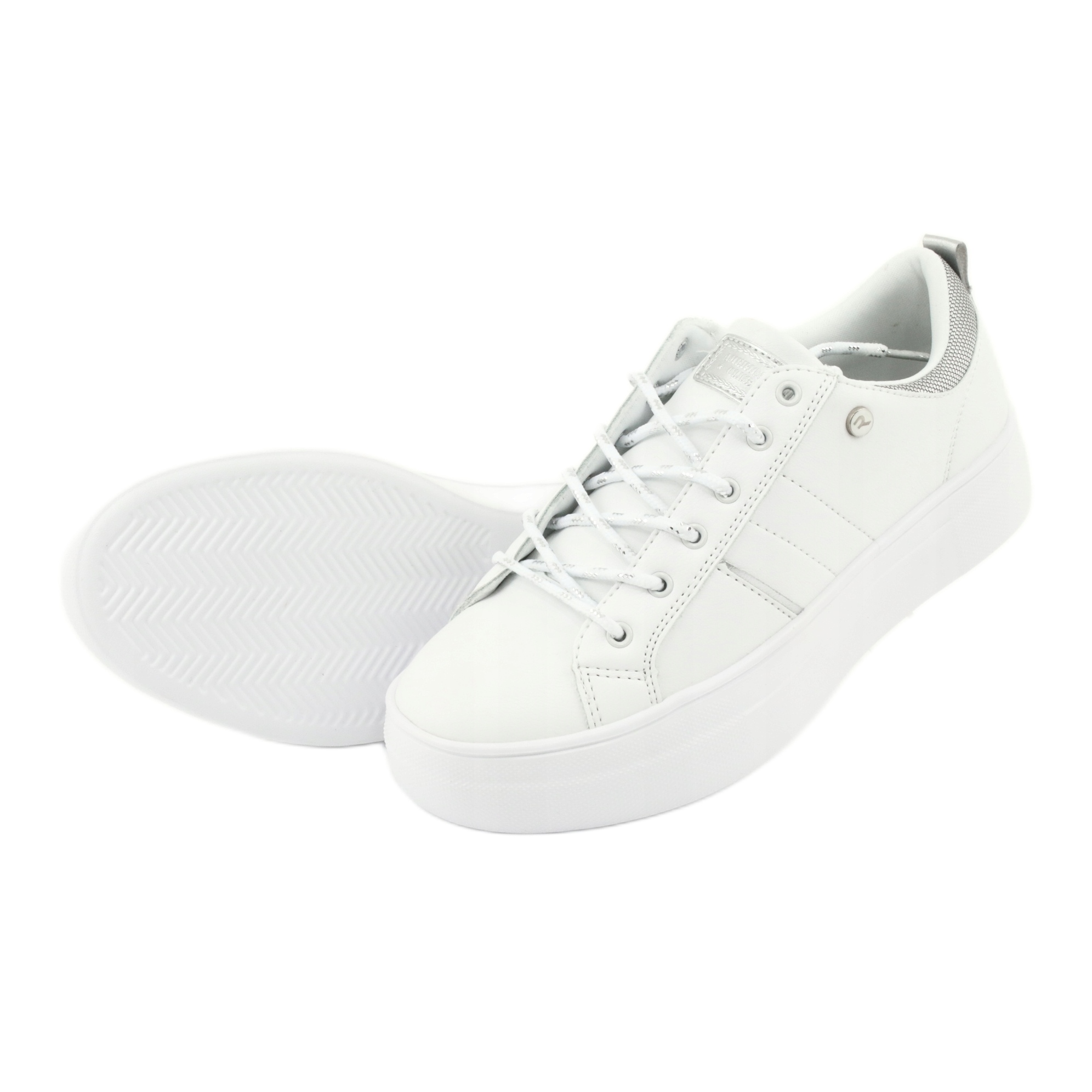 Lär känna American Club RH09 vita sportsneakers, som kombinerar de senaste modetrenderna och funktionalitet. Dessa skor är gjorda av högkvalitativt konstläder och är inte bara snygga utan också miljövänliga. En intressant accent är silverinsatser som lägger till attraktivitet och karaktär.