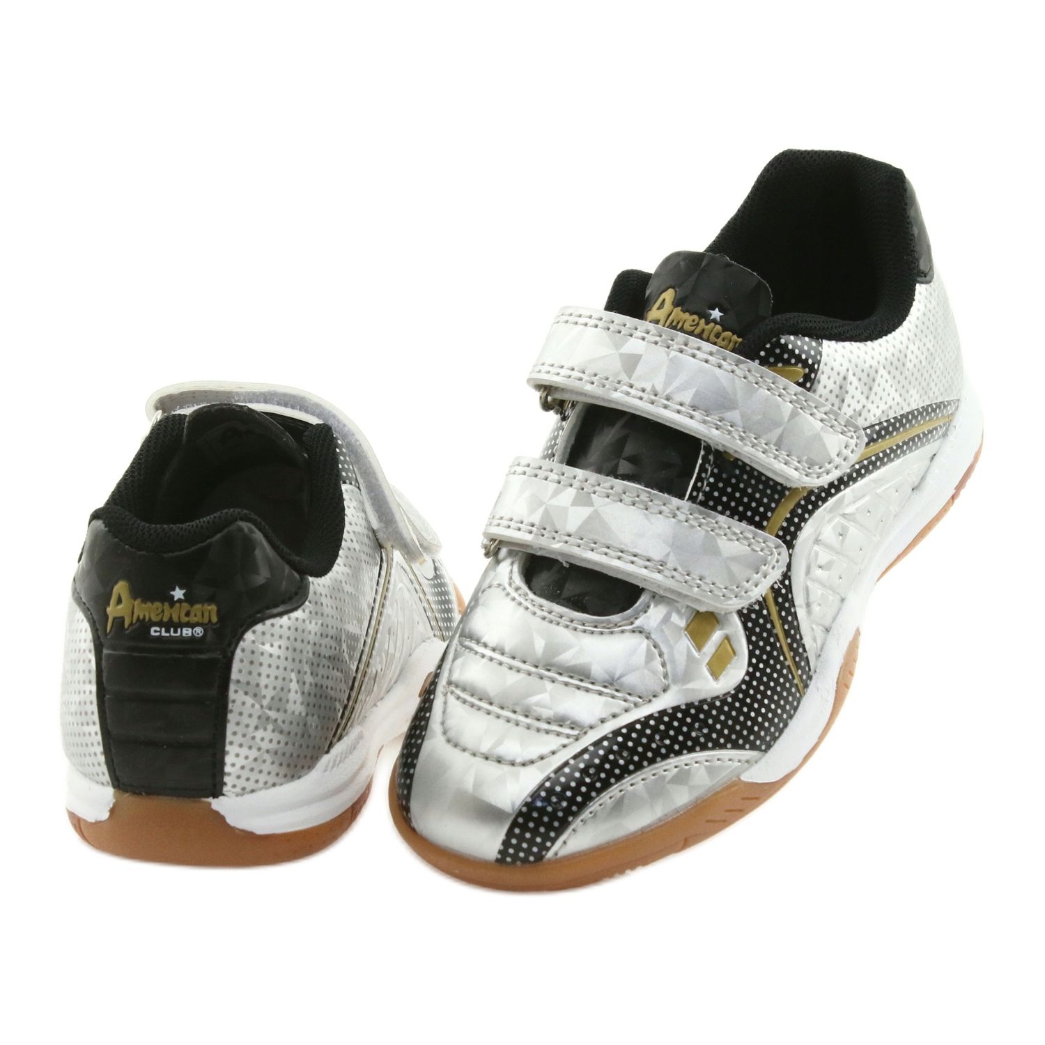 American Club Silver inomhusskor kännetecknas av sin moderna design, i silvernyanser med subtila svarta och guldaccenter. Deras unika utseende gör dem attraktiva för både pojkar och flickor. Skorna knäpps med praktisk kardborre, vilket gör dem lätta att ta av och på och samtidigt möjliggöra en perfekt passform till foten.