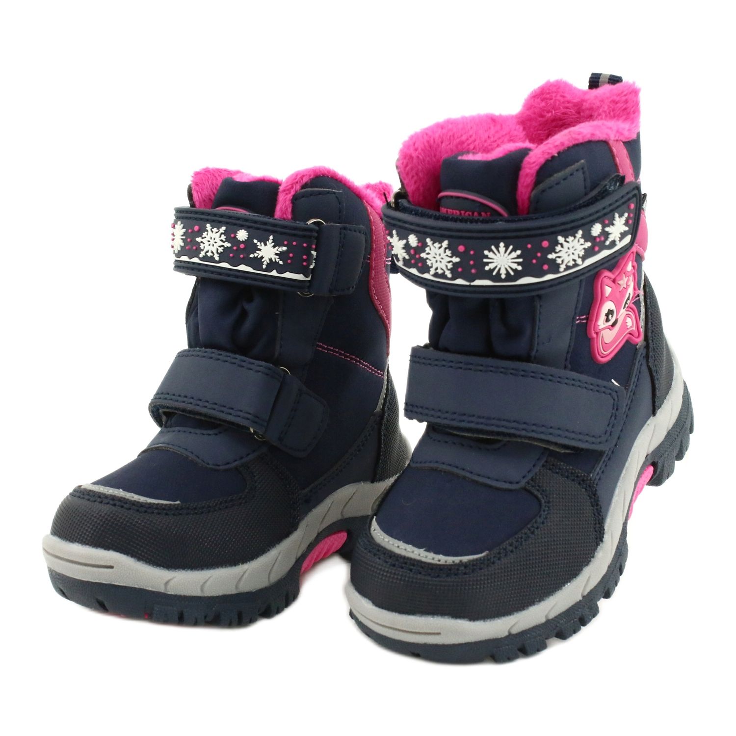 American Club-stövlar finns i attraktiva marinblå och rosa färger, vilket säkert kommer att tilltala många tjejer. Kardborre gör det lättare att ta av och på skorna och den styva hälen stabiliserar fotleden, vilket är viktigt för aktiva barn.