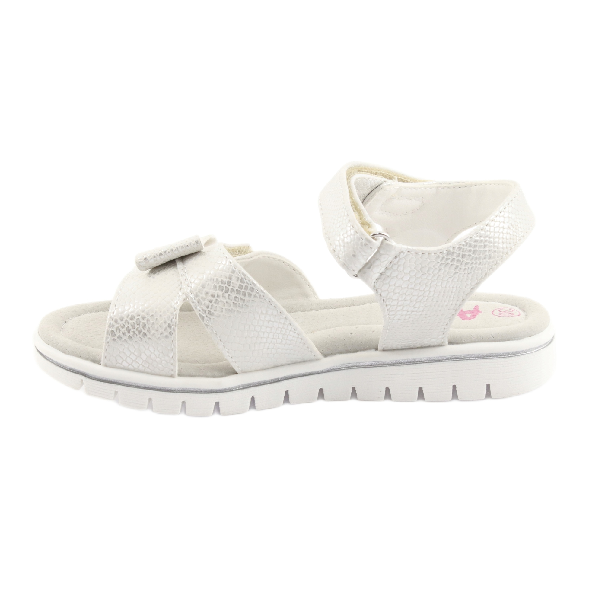 Eleganta och bekväma sandaler för flickor, kännetecknade av en delikat båge och en pärlskugga av vitt. Kombinationen av modern design med funktionella lösningar säkerställer komforten att bära hela dagen - perfekt varje dag, för skolan och för sommarfirandet.