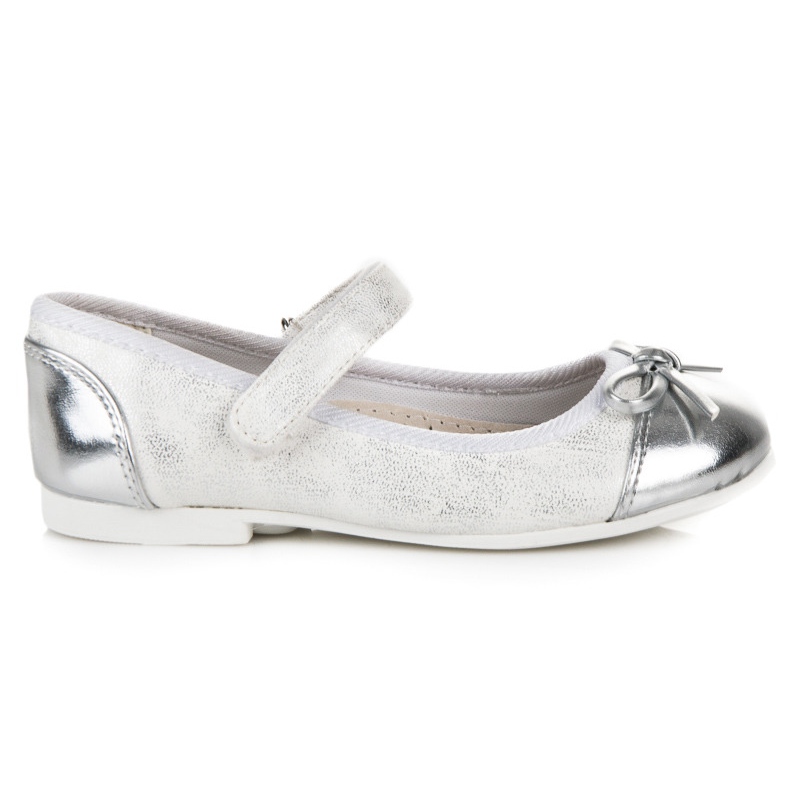 Delikat, elegant balettlägenheter för tjejer från märket American Club. Den klassiska grå färgen med patenterad tå ger skorna en chic look, och gör dem samtidigt lämpliga för både vardagsstyling och familjefester.