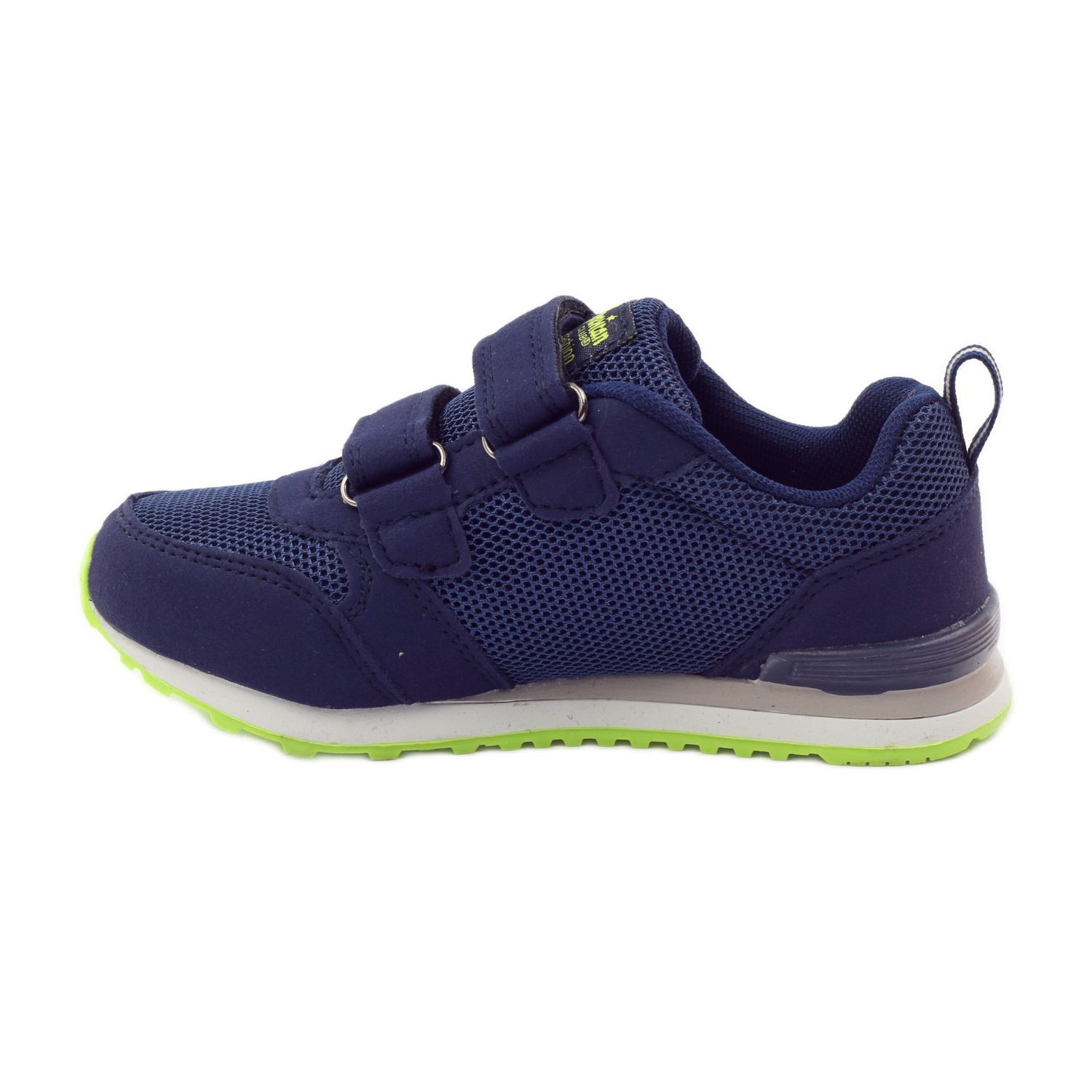 Insidan av skorna är avslutad med textilmaterial, vilket dessutom ökar bärkomforten, och lädersulan ger ordentligt stöd för foten. Den marinblå färgen med gröna accenter ger skorna en sportig karaktär, som säkert kommer att tilltala små aktivitetsälskare.