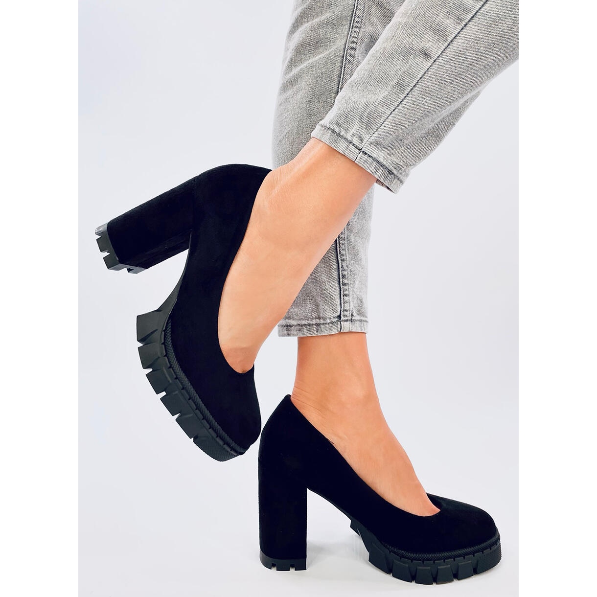 Angela Black högklackade pumps och plattformspumpar är ett unikt förslag för varje kvinna som vill lägga till elegans och chic till sin styling. Dessa svarta pumps är gjorda av ekologisk mocka av hög kvalitet och fångar ögat med sin minimalistiska design. Den runda nosen och den släta ytan ger dem en klassisk karaktär, perfekt för avslappnade och mer formella outfits.
