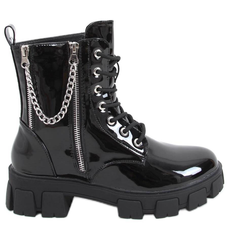 Inna marka Ankelboots i lack med kedja Mina Black svart
