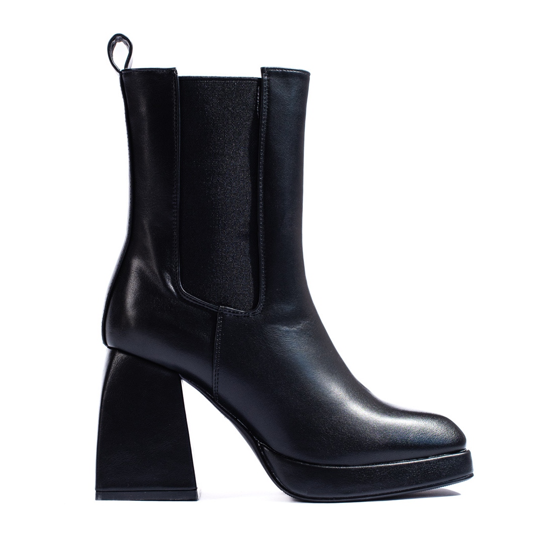 Chelsea-stövlar för kvinnor med bred klack, svart "Shelovet", är kvintessensen av stil, komfort och tidlös elegans. Dessa stövlar är designade för kvinnor som värdesätter komfort och moderiktig design. Deras enkla men snygga form gör att de matchar nästan vilken typ av outfit som helst, från vanliga jeans till eleganta klänningar.