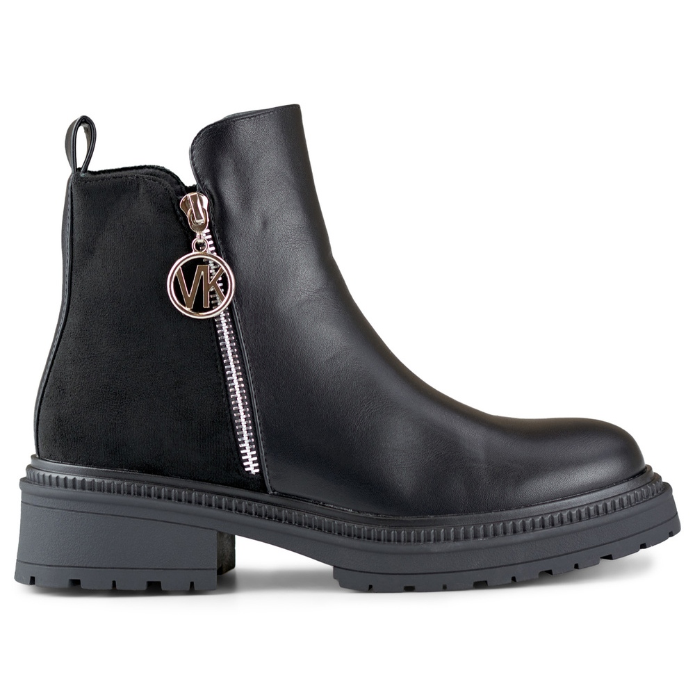 Detaljer: Ankelstövlar för kvinnor med dekorativ dragkedja svart