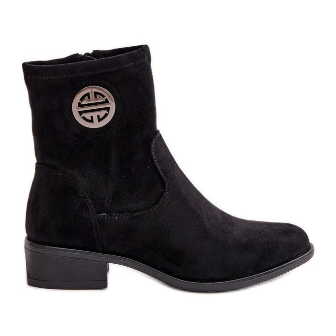 Detaljer: Ankelstövlar för kvinnor med dragkedja med en dekorativ detalj, ekomocka, svart Lerioria