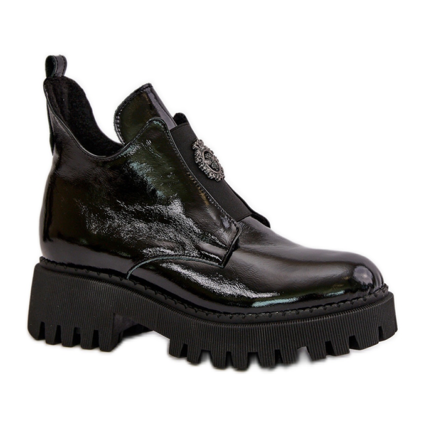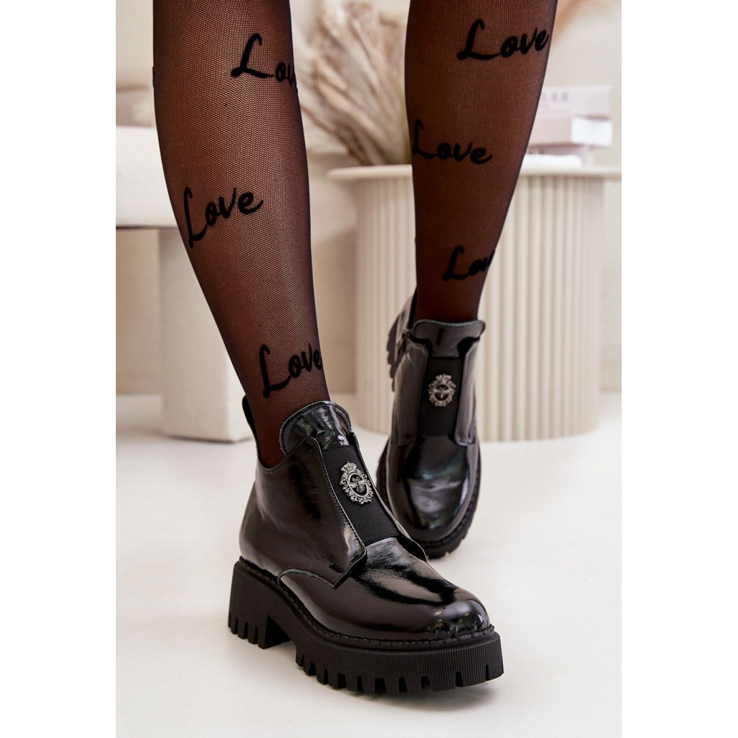 På framsidan, på den flexibla insatsen finns en original plastdekoration, som ger stövlarna en unik karaktär. Skorna inre har isolerats med en skopefilt, vilket gör dem perfekta för svalare dagar, vilket ger värme och komfort.