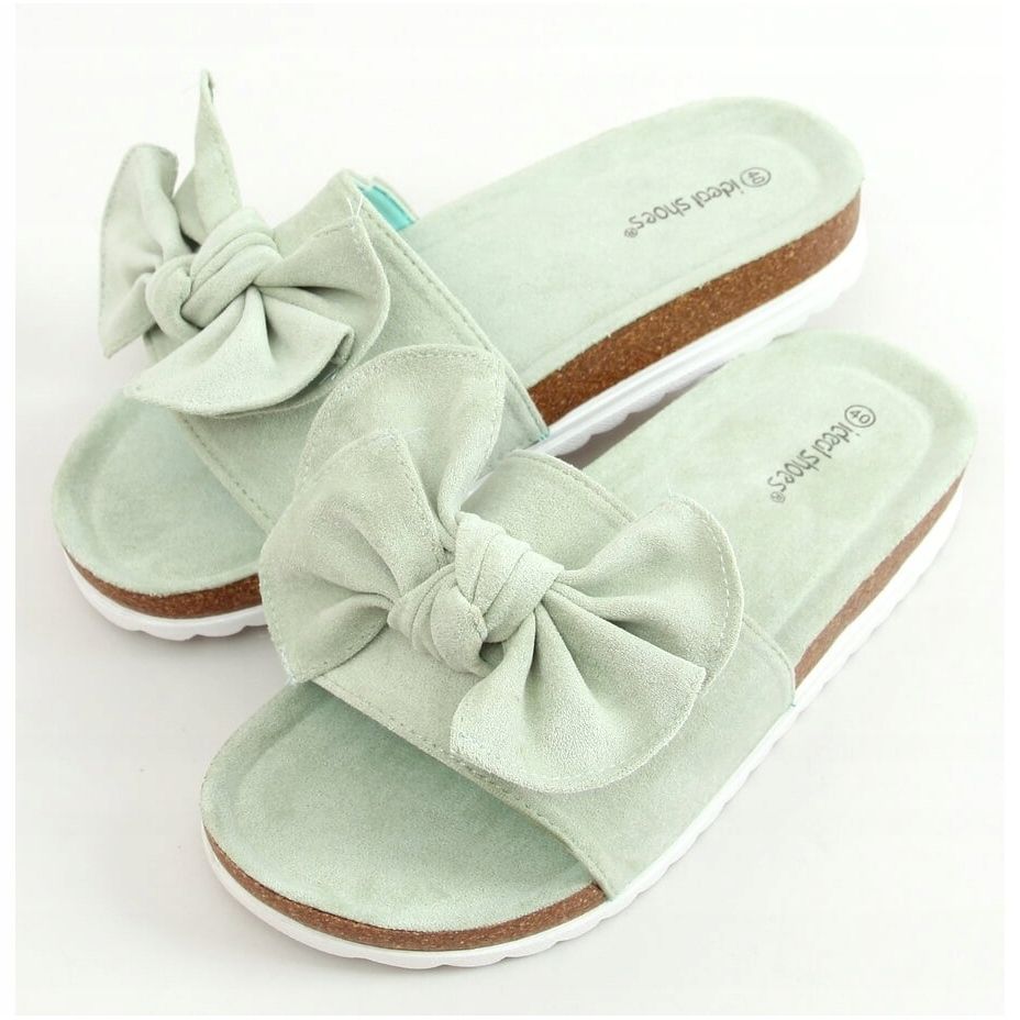 Upptäck den unika stilen och komforten som erbjuds av 7855 gröngröna tofflor med korksula. Dessa mockatofflor för kvinnor är det perfekta valet för sommardagar, och kombinerar elegans med vardagskomfort. Det breda bältet dekorerat med en charmig rosett väcker inte bara uppmärksamhet, utan håller också foten perfekt, vilket säkerställer stabilitet vid varje steg.