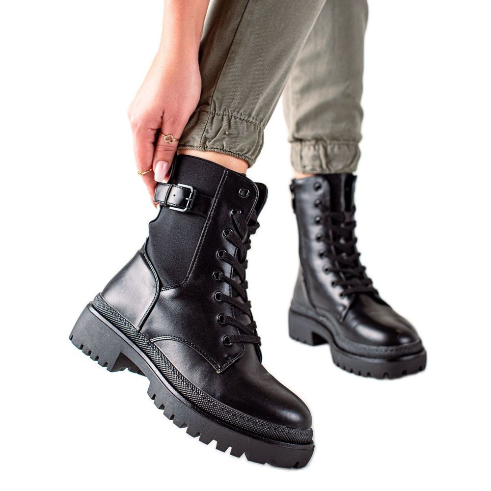 Upptäck unik stil och komfort med Groto Gogo Worker Boots med Spänne i en klassisk svart färg. Dessa ankelstövlar för kvinnor är det perfekta valet för höst/vintersäsongen, perfekt matchar den avslappnade stilen som kommer att ge lite karaktär till varje styling.