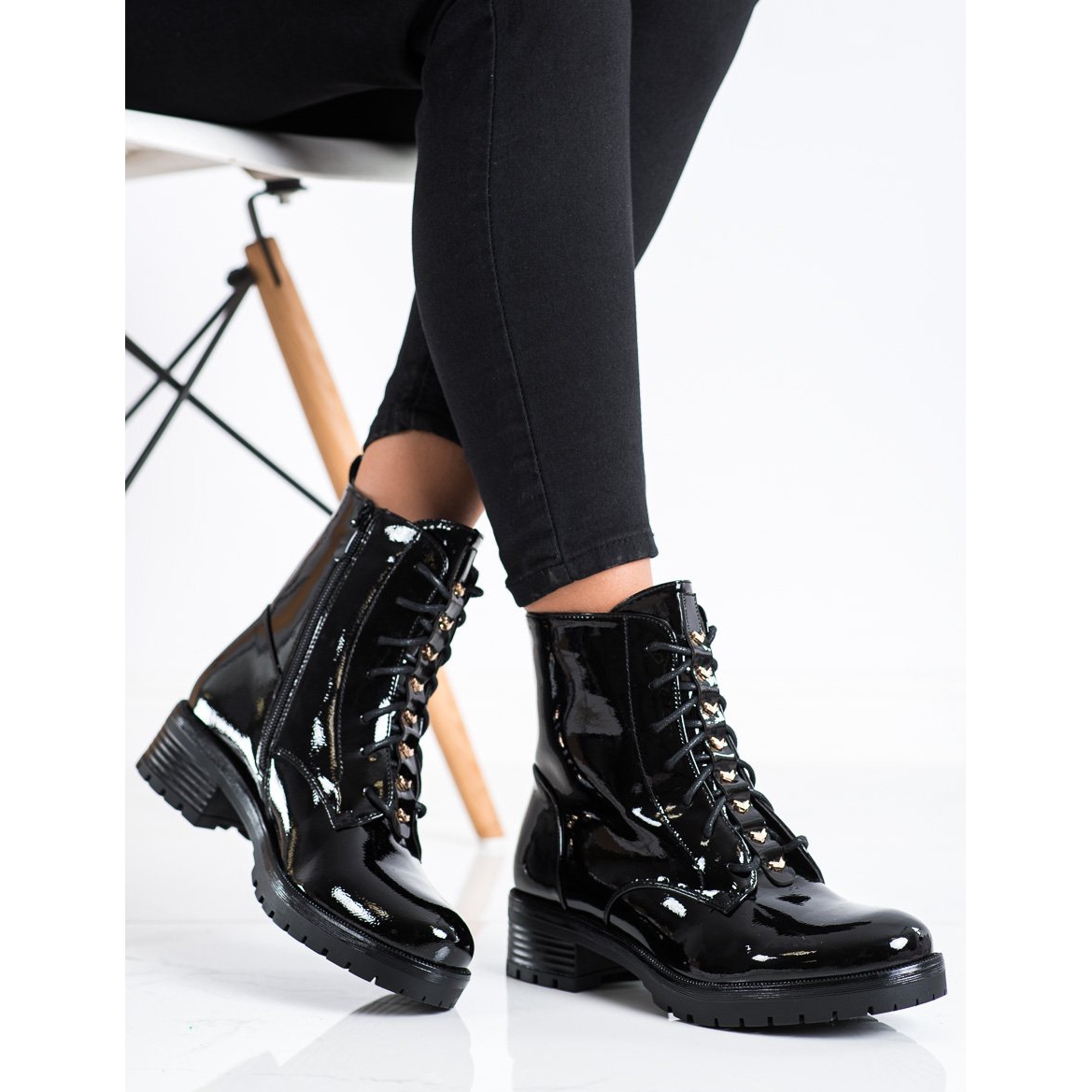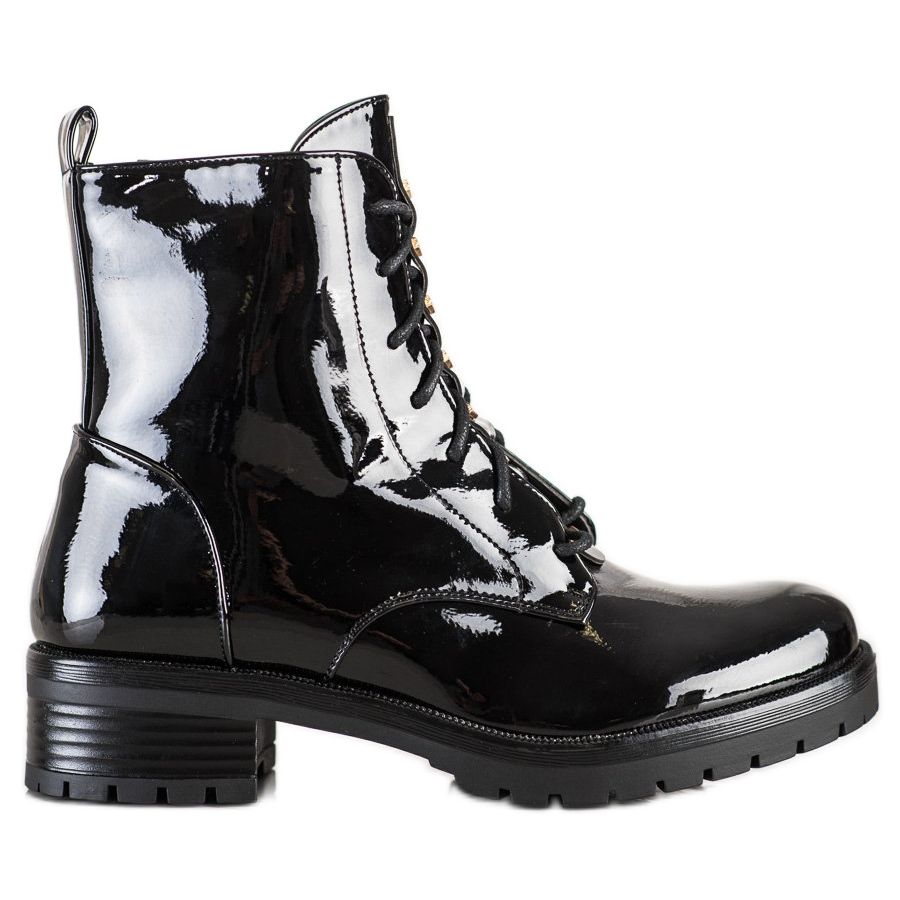 Den övre bredden på 23 cm och den övre höjden på 14 cm gör att arbetarna passar perfekt på benet, och deras fashionabla, lackade utseende drar till sig uppmärksamhet. Dessa ankelboots är ett måste i varje garderob, speciellt under hösten/vintern.