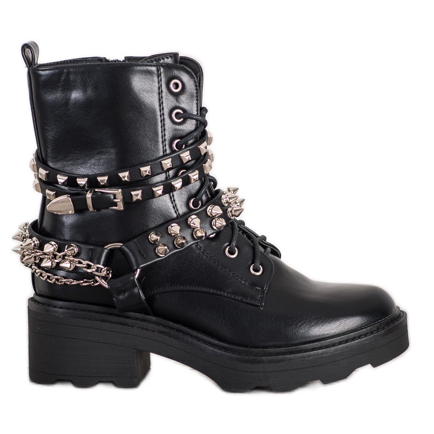 Fashionabla Seastar Workers med dubbar i svart är det perfekta valet för kvinnor som vill kombinera komfort med rockstil. Dessa skor är gjorda av ekologiskt läder och ser inte bara extremt attraktiva ut utan är också miljövänliga. Tack vare dekorativa element som ett spänne, bälte och strass, sticker arbetare ut från andra modeller och lägger till karaktär till varje styling.