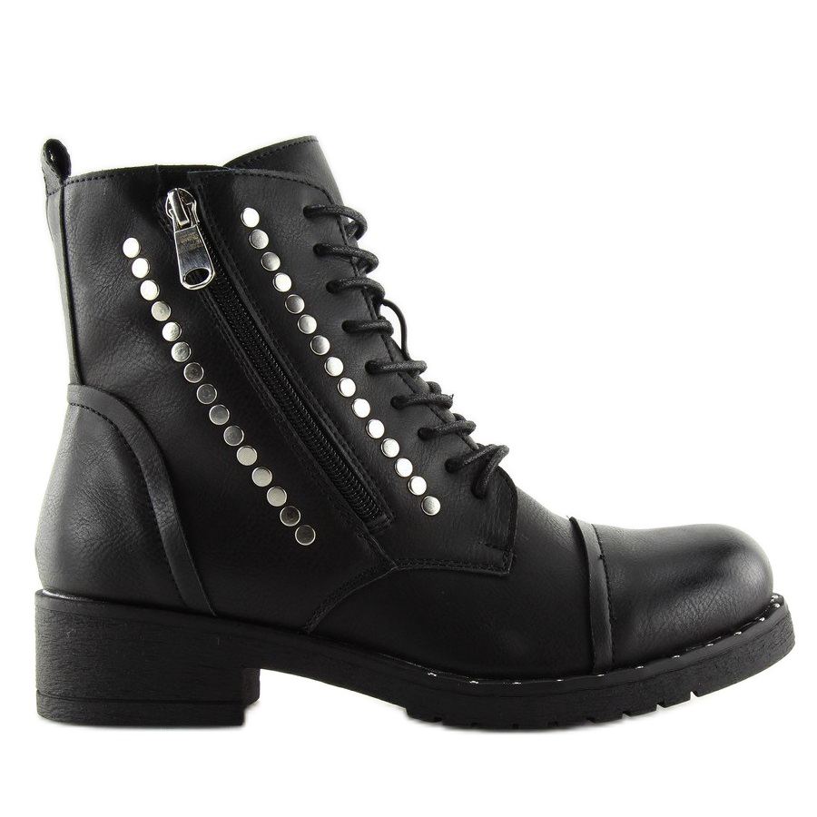88060 Black Studded Workers är det perfekta valet för kvinnor som letar efter snygga och bekväma vardagsskor. Dessa snörstövlar med platt sula i en klassisk svart färg utmärks inte bara av sin elegans, utan också av moderiktiga detaljer i form av nitar och silver strass, som ger dem en unik karaktär.