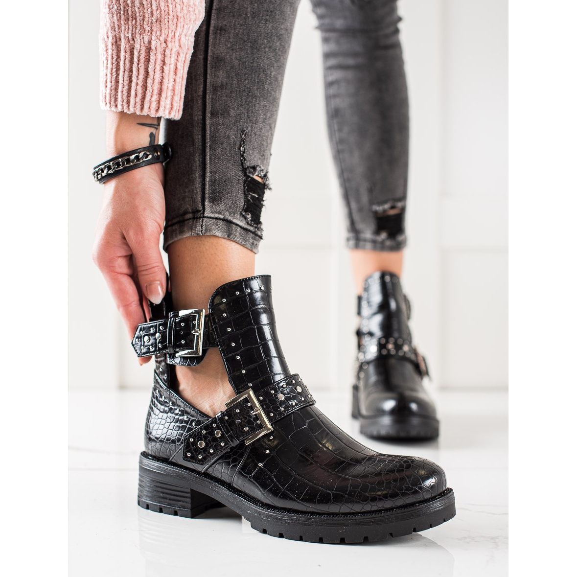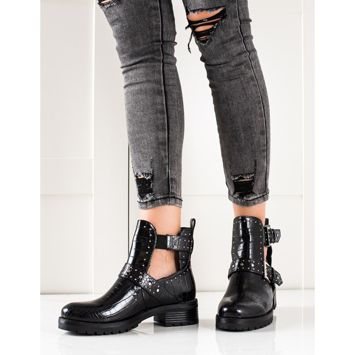 Vi presenterar unika arbetarväskor med ett dekorativt spänne från varumärket Bestelle, som njuter av sin elegans och stil. Dessa svarta ankelboots kommer att passa perfekt in i vardags- och kvällsstilar och tillför en unik rockkaraktär.
