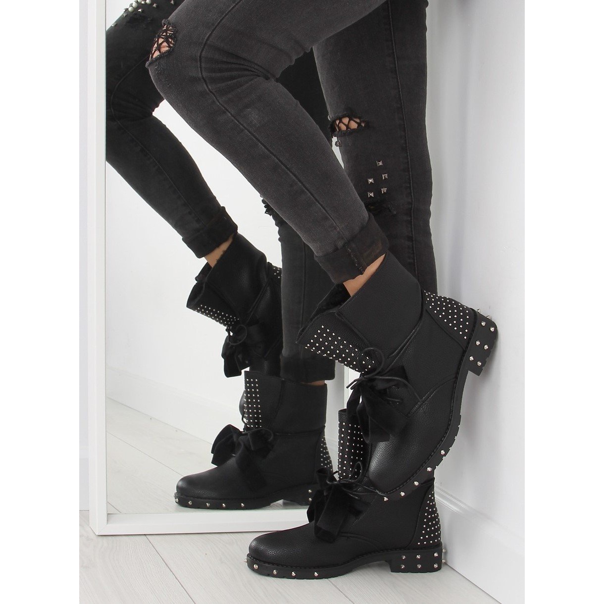 Upptäck extraordinär elegans och rockstil i ett - svarta dubbade arbetarstövlar E4947 svart är det perfekta valet för kvinnor som vill sticka ut från mängden. Dessa ankelstövlar för kvinnor kombinerar moderiktig design och funktionalitet. Tillverkade av ekologiskt läder ger de inte bara ett attraktivt utseende, utan också komfort i dagligt bruk.