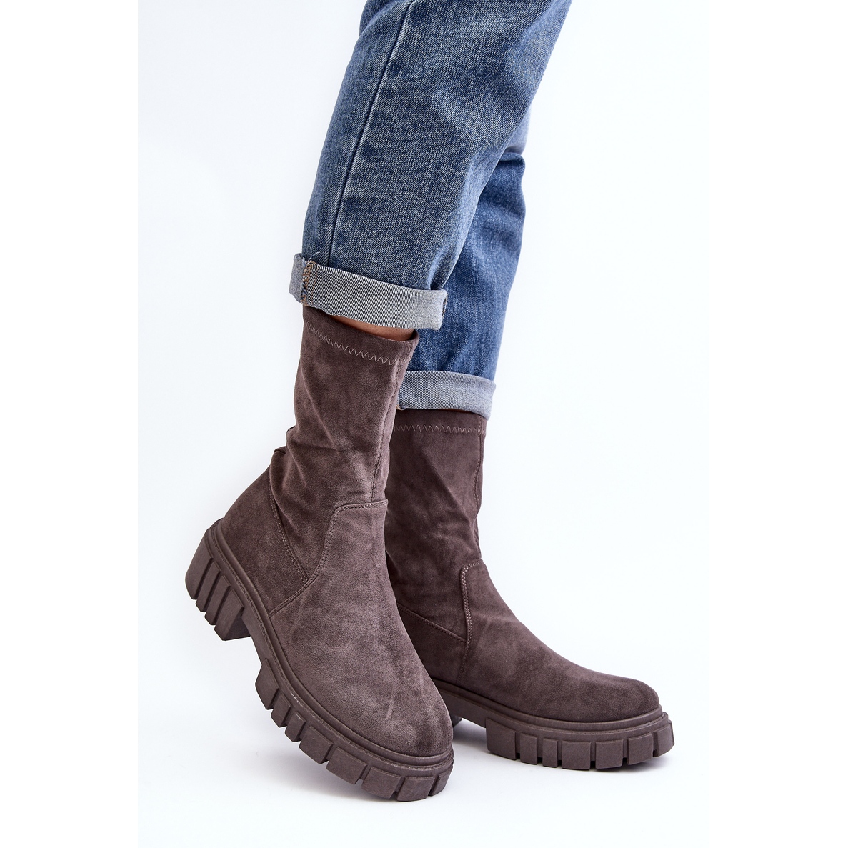 Slip-on arbetsstövlar med platt klack från märket Divella är ett perfekt val för kvinnor som värdesätter komfort och stil under kallare dagar. Grå stövlar av högkvalitativ eko-mocka är synonymt med modern design kombinerat med komfort.