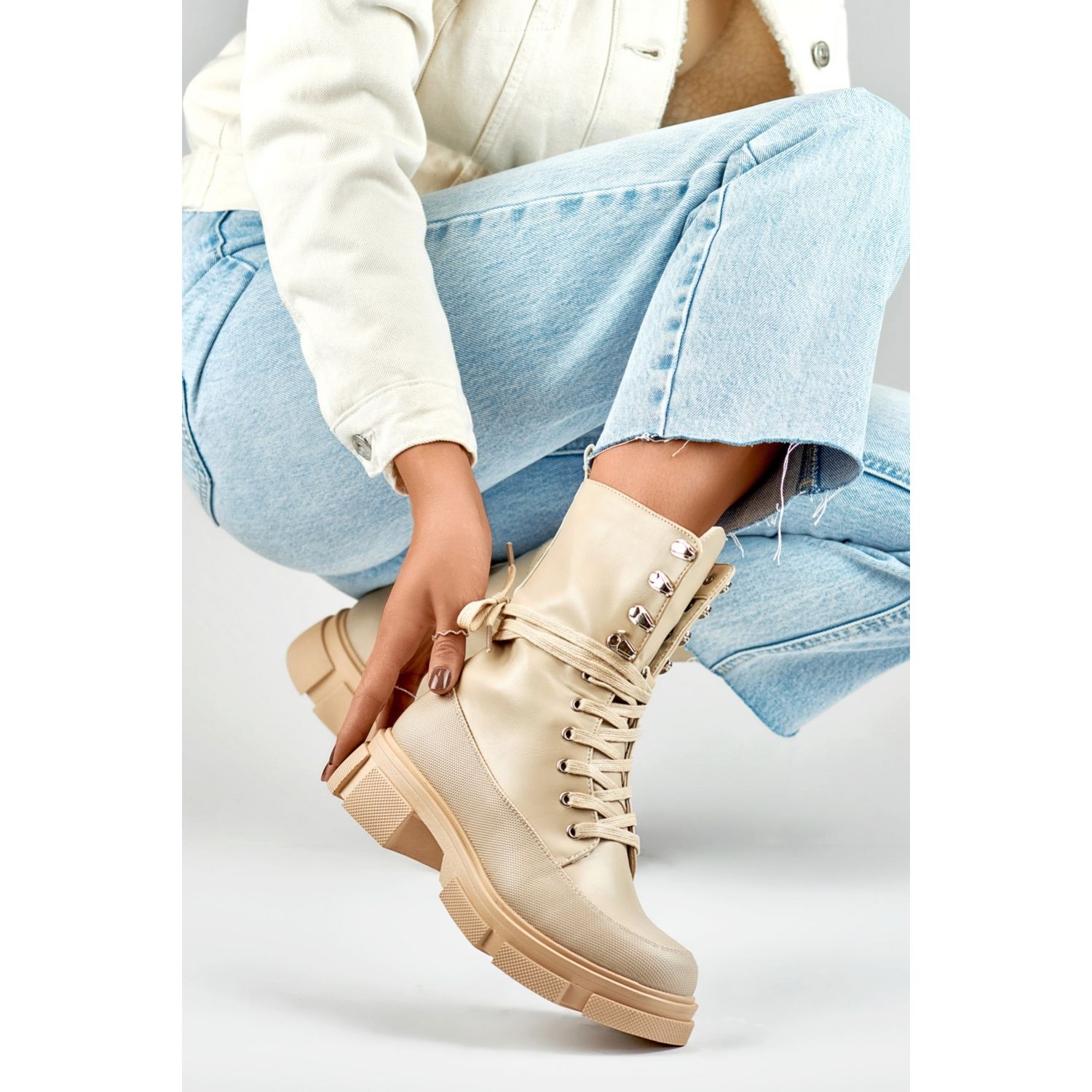 Dessa arbetare kommer att vara ett perfekt komplement till många höst- och vinterstyliseringar - både avslappnade och mer eleganta. Beige Color gör skorna enkla att kombinera med olika kläder och lägga till karaktär till varje stilisering.