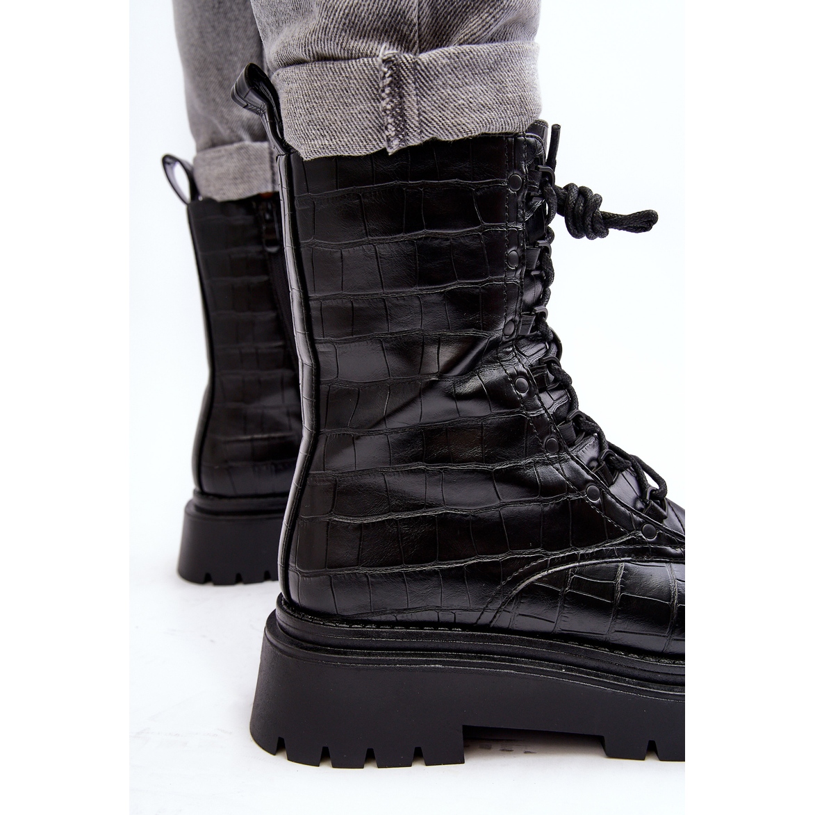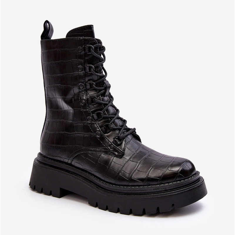 Detaljer: Arbetarstövlar för kvinnor med dekorativ prägling Svart Tarolia