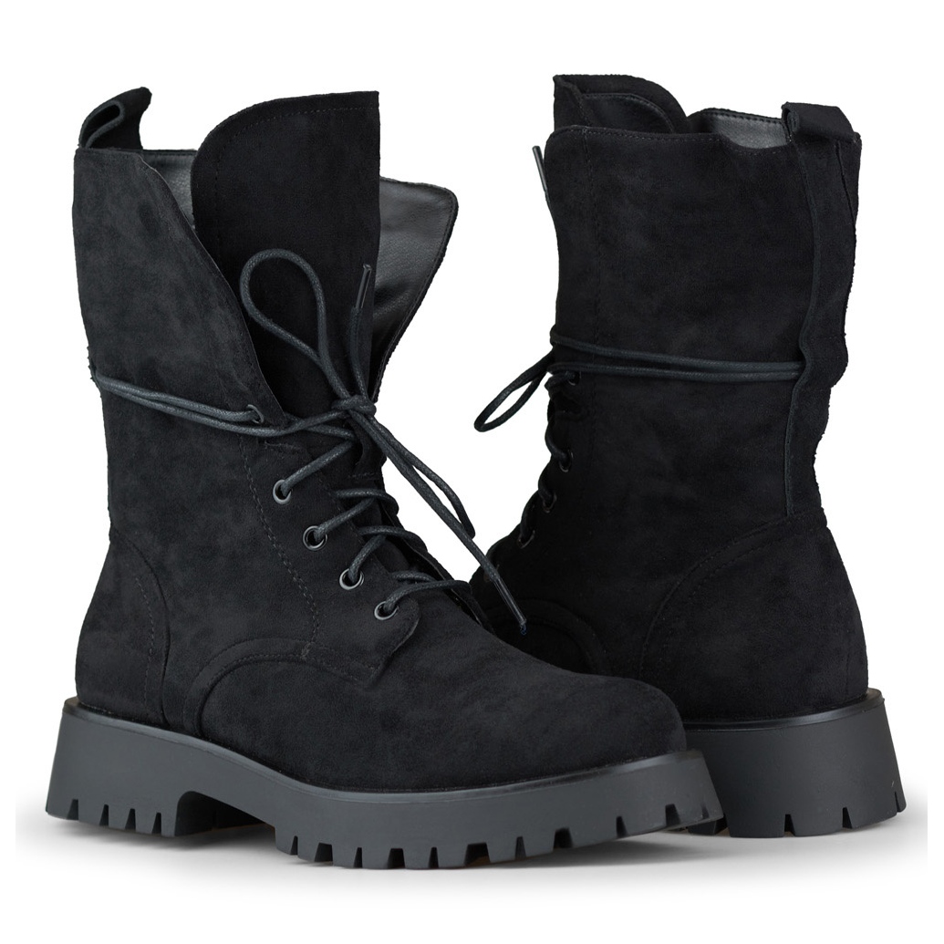 Information: Arbetsstövlar i svart mocka med snörning för kvinnor beige