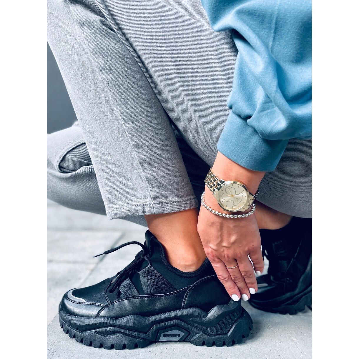Insidan av skorna är fodrad med tyg, vilket garanterar bärkomfort hela dagen. Flexibla material, som neoprentyg, gör att foten kan andas och anpassa sig till sin form, vilket är särskilt viktigt för en modern kvinnas dynamiska livsstil. Den svarta färgen, synonymt med universalitet, kommer att göra dessa skor till ett oersättligt element i garderoben för alla fans av urban stil.