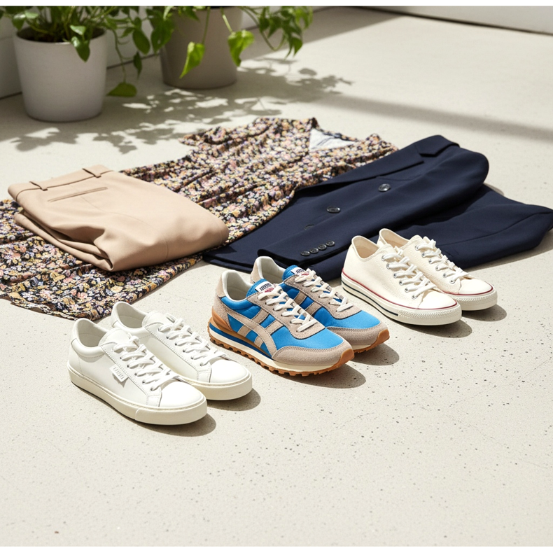 Klassiska canvas sneakers upplever en renässans. Enkla, låga modeller i vitt eller ecru är extremt mångsidiga och matchar den smarta avslappnade stylingen som dominerar bland urbana fashionistas 2026.