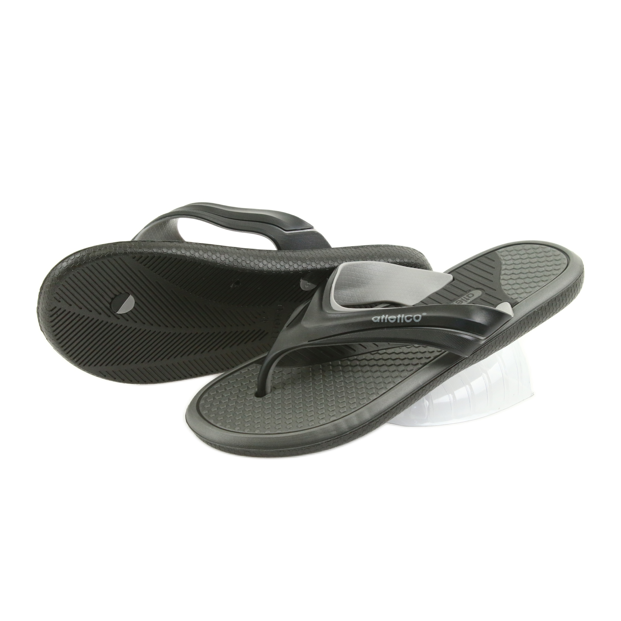 Svarta Atletico flip-flops för män är det perfekta valet för alla män som värdesätter komfort och modern design. Dessa snygga flip-flops i dominerande svart färg med grå accenter är perfekta för både poolen och vardagsbruk hemma eller under sommarpromenader.