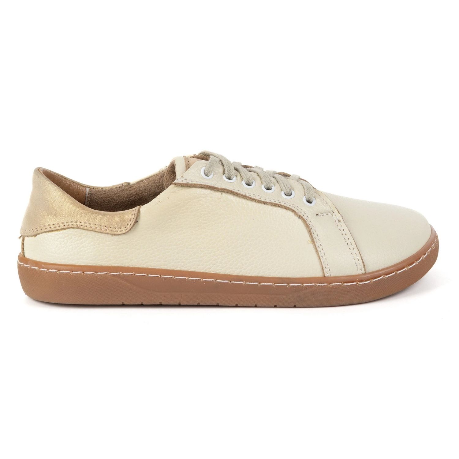 ** Olivier Aura: Cream Women's Barefoot Leather Sneakers Bekväma skor med en platt sula **